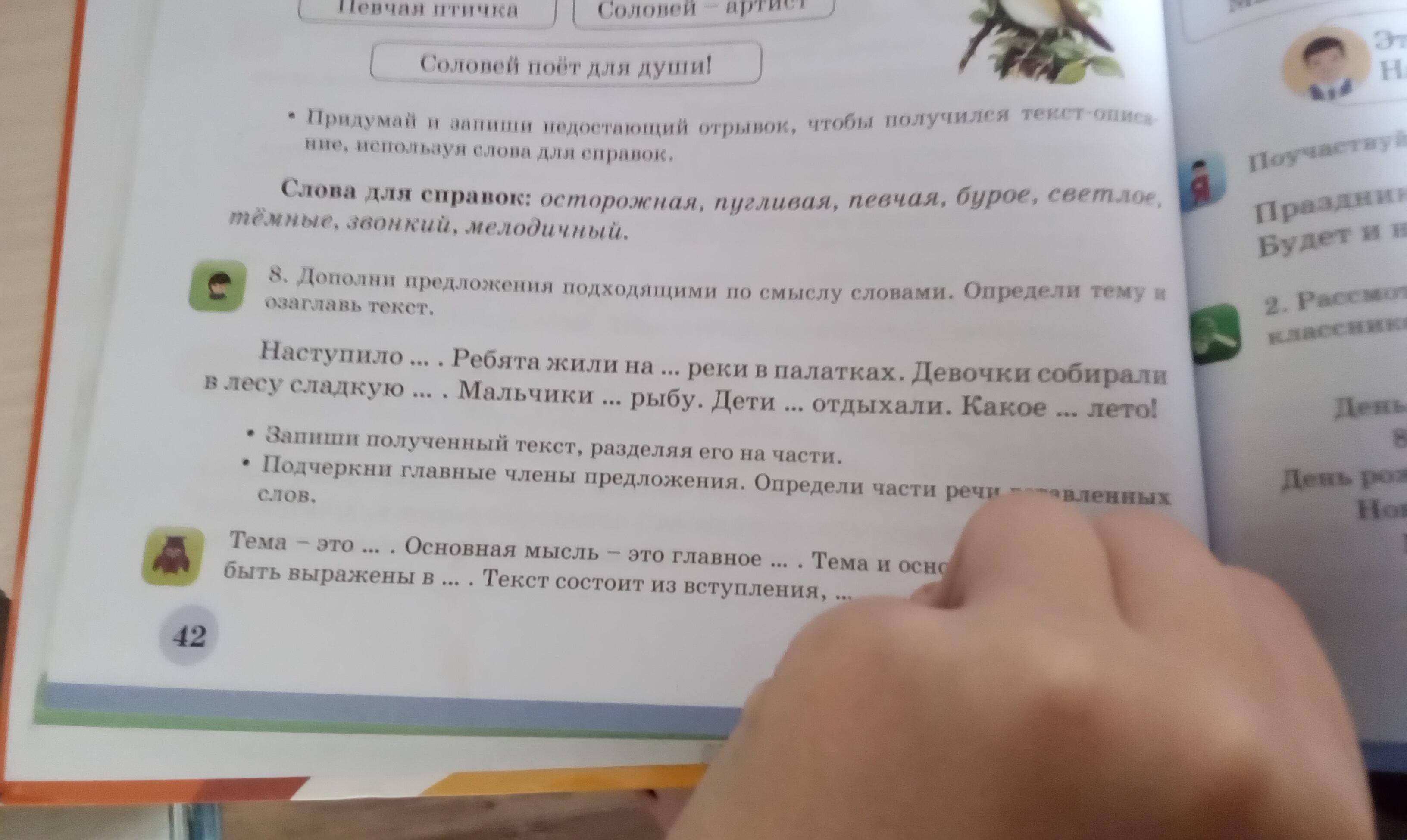 Наступило лето. Ребята жили на берегу реки в палатках. Девочки собирали в лесу сладкую ягоду. Мальчики ловили рыбу. Дети прекрасно отдыхали. Какое чудесное лето!