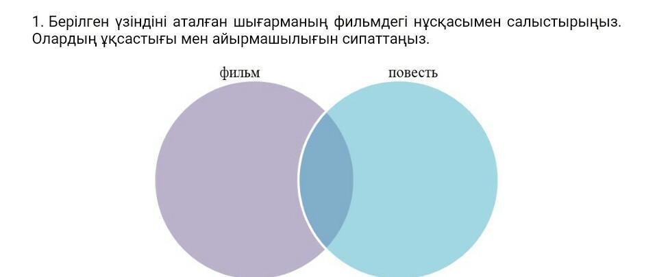 Берілген узiндiнi аталған шығарманың фильмдегi нұсқасымен салыстырыңыз . Олардың ұқсастығы мен айырмашылығын сипаттаңыз . фильм повесть «Тел өскен ұл» сравнить кино и повесть