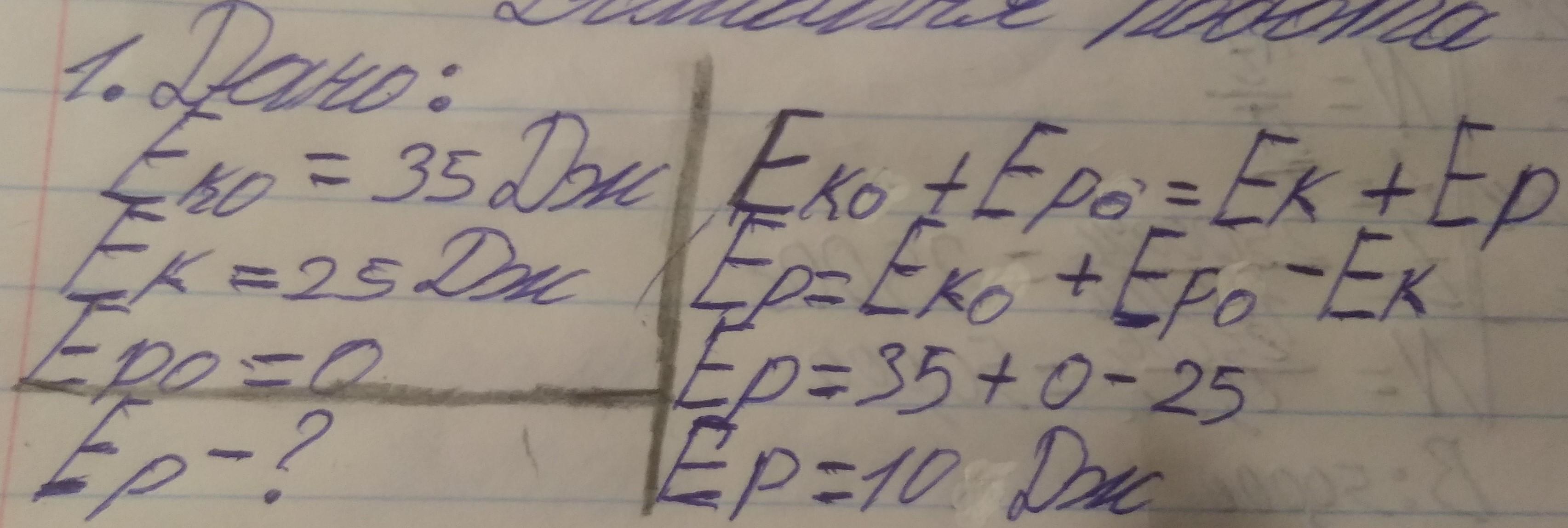 1. Волейбольний м'яч кидають в гору, надаюючи кінетичну енергію 35 Дж. Визначте потенціальну енергію м'яча B MOMEHт спостереження, якщо його кінетична енргія