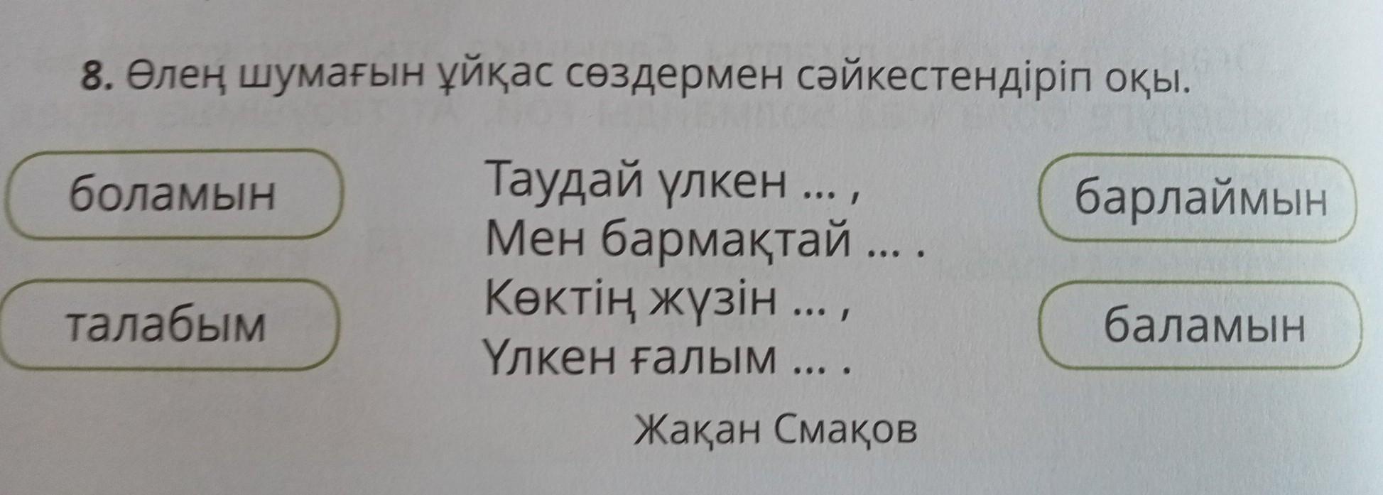 Өлең шумағын ұйқас сөздермен сәйкестендіріп оқы.Помогите пж