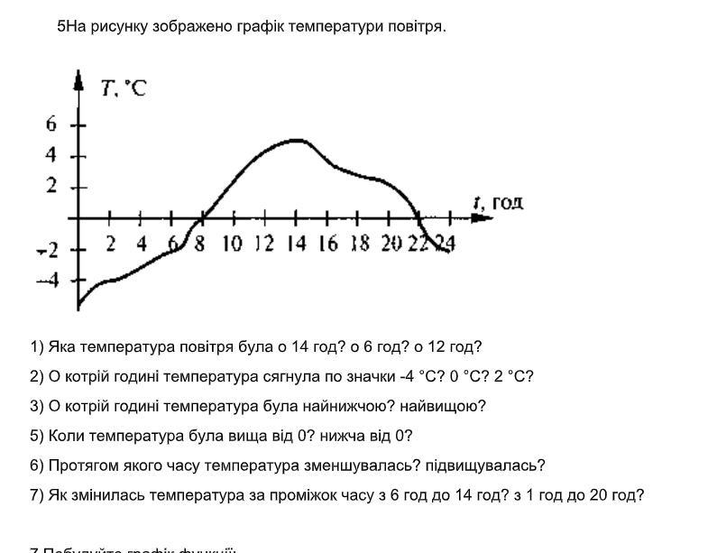 7) з 6 годин до 14 температура зросла, з 1 год до 10 год також зросла