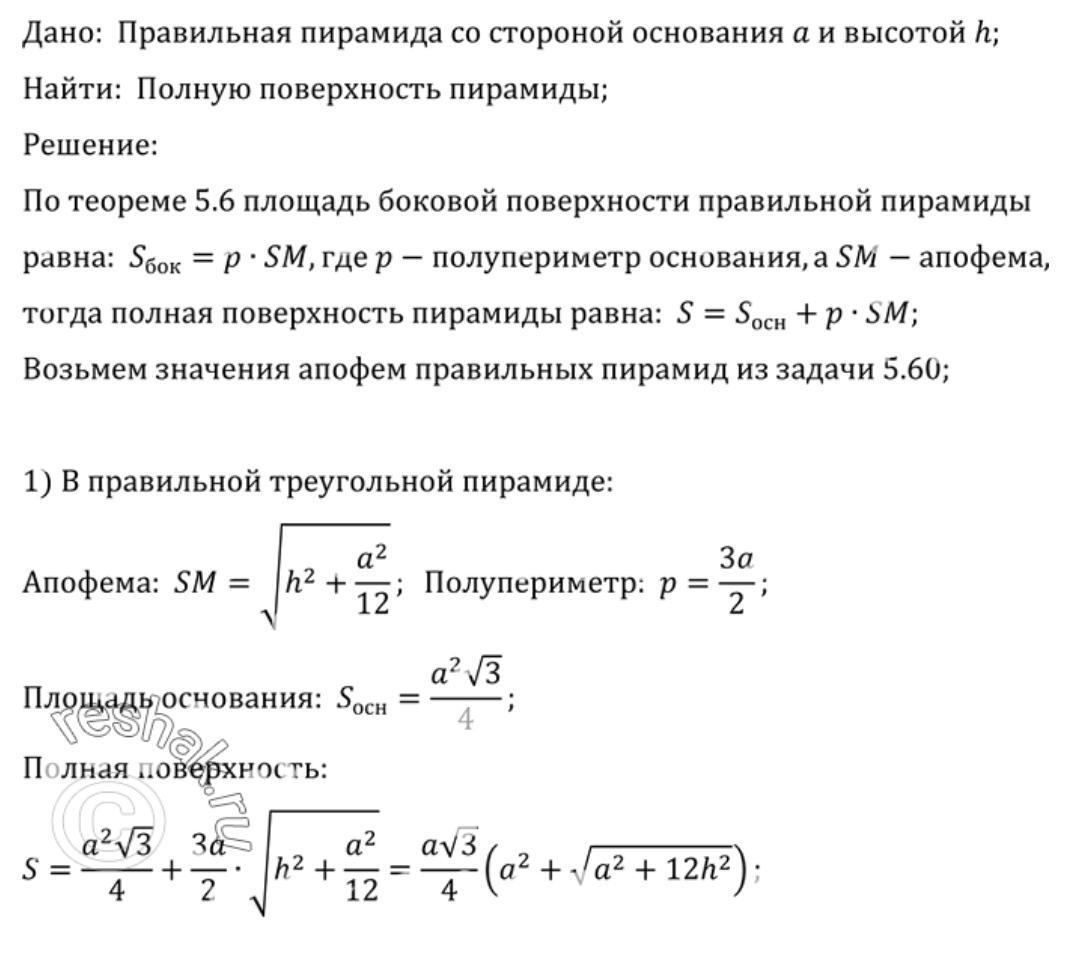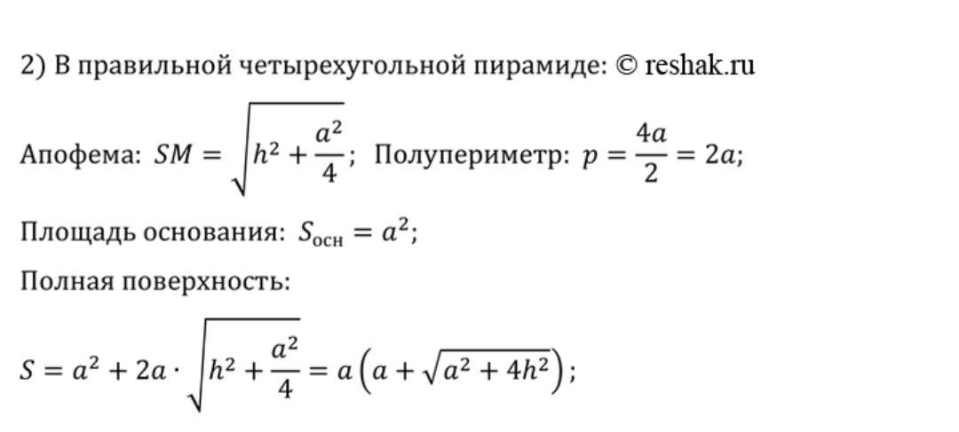 Найти поверхность трёх и четырёх угольной правильной пирамиды, если сторона основания равна a, а высота равна h.