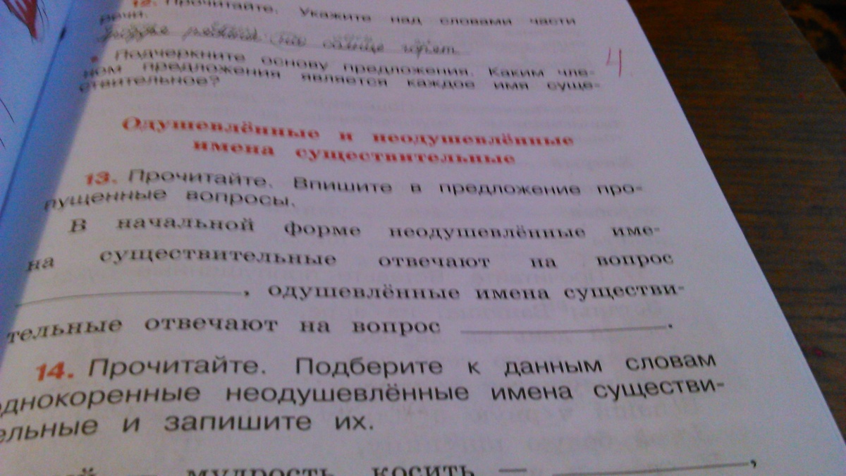 в начальной форме неодушевлённые имена существительные отвечают на вопрос ЧТО?, одушевлённые имена существительные отвечают на вопрос КТО?