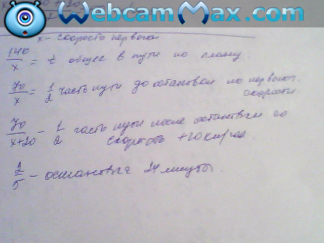 Из города А,в город В,расстояние между которыми 140 км,выехал поезд.В середине пути он был задержан на 24 мин,но,увеличив скорость на 20 км/ч ,прибыл в город В без опоздания.Найдите первоначальную скорость поезда.