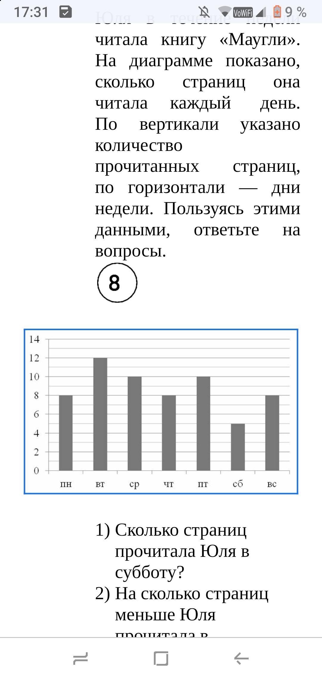 Во втором вопросе: прочитала в воскресенье чем в среду