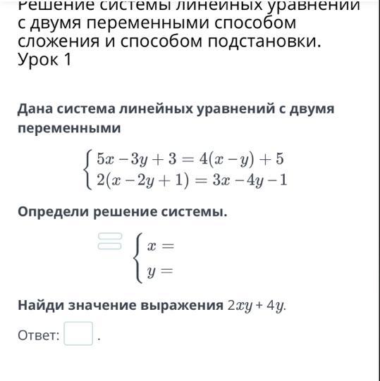 Найди значение выражения 2xy + 4y.