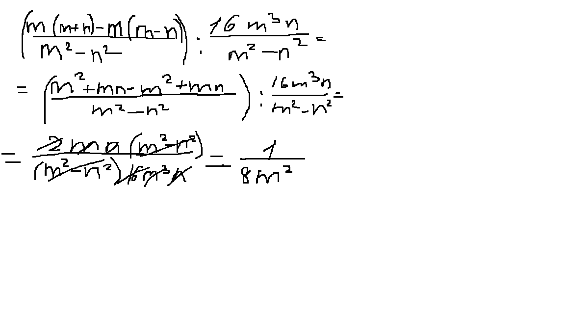 2mn/(m^2-n^2) : 16m^3n/(m^2-n^2)=2mn/16m^3n=1/8m^2