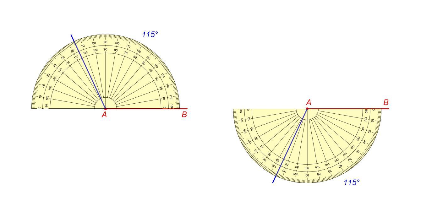 1. Начерти луч AB. С помощью транспортира отложи от него угол,