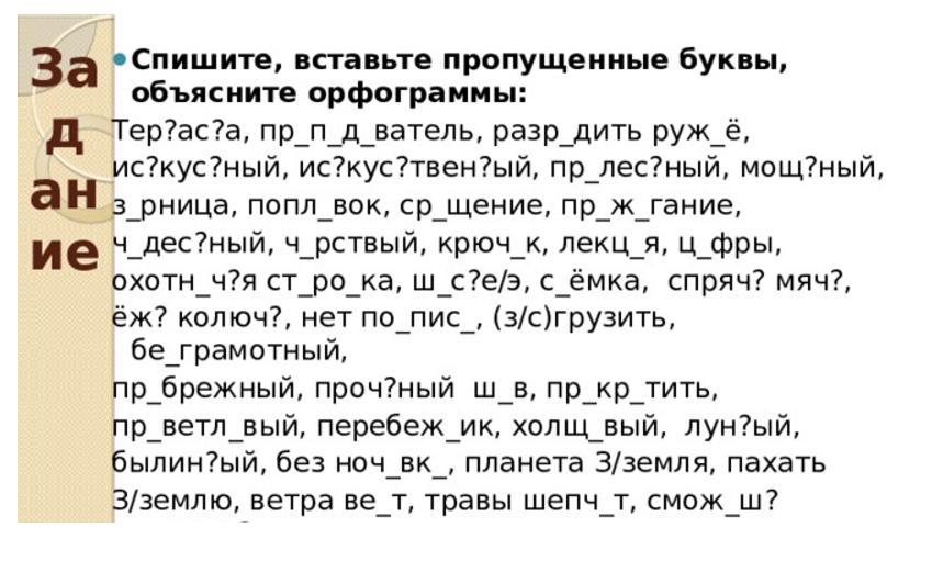 Терраса, преподаватель, разрядить ружье, искусный, искусственный, прелестный, мощный, зарница, поплавок, сращение, прожигание, чудесный, чёрствый, крючок, лекция, цифры, охотничья сторука, шоссе съемка, спрячь мяч, ёж колюч, нет подписи, сгрузить, безграмотный, прибрежный, прочный шов, прикрутить, приветливый, перебежек, холщовый, лунный, былинный, без ночевки, планета Земля, пахать землю, ветра веют, травы шепчут, сможешь