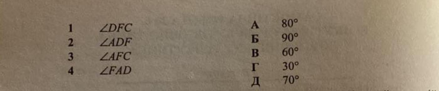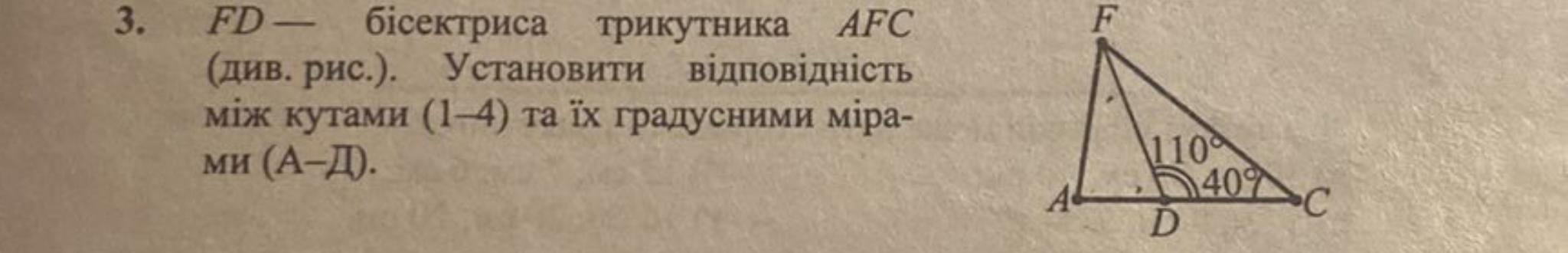 установіть відповідність між кутами (1-4) і їх градусними мірами