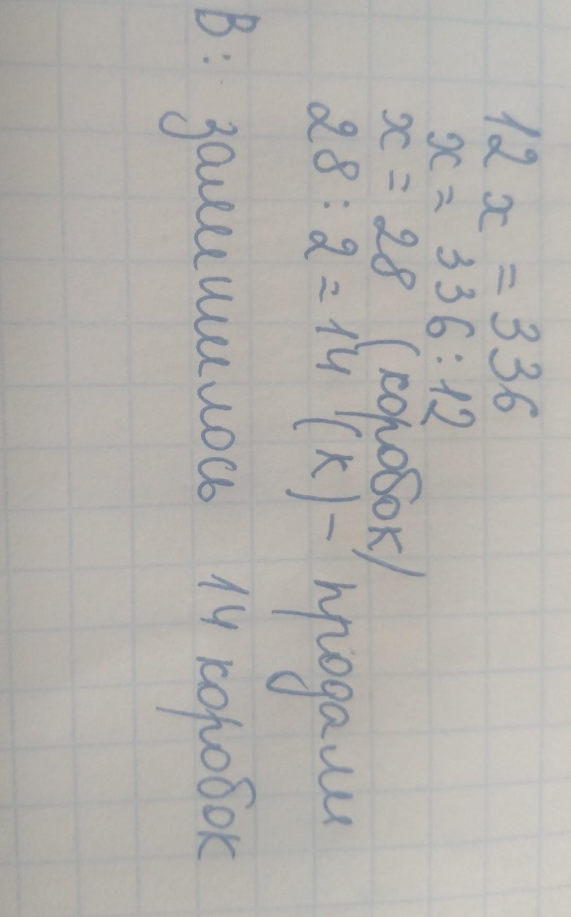 в коробки разложили 336 чайных ложек по 12 штук половину числа всех коробок с ложками продали сколько коробок с ложками осталось