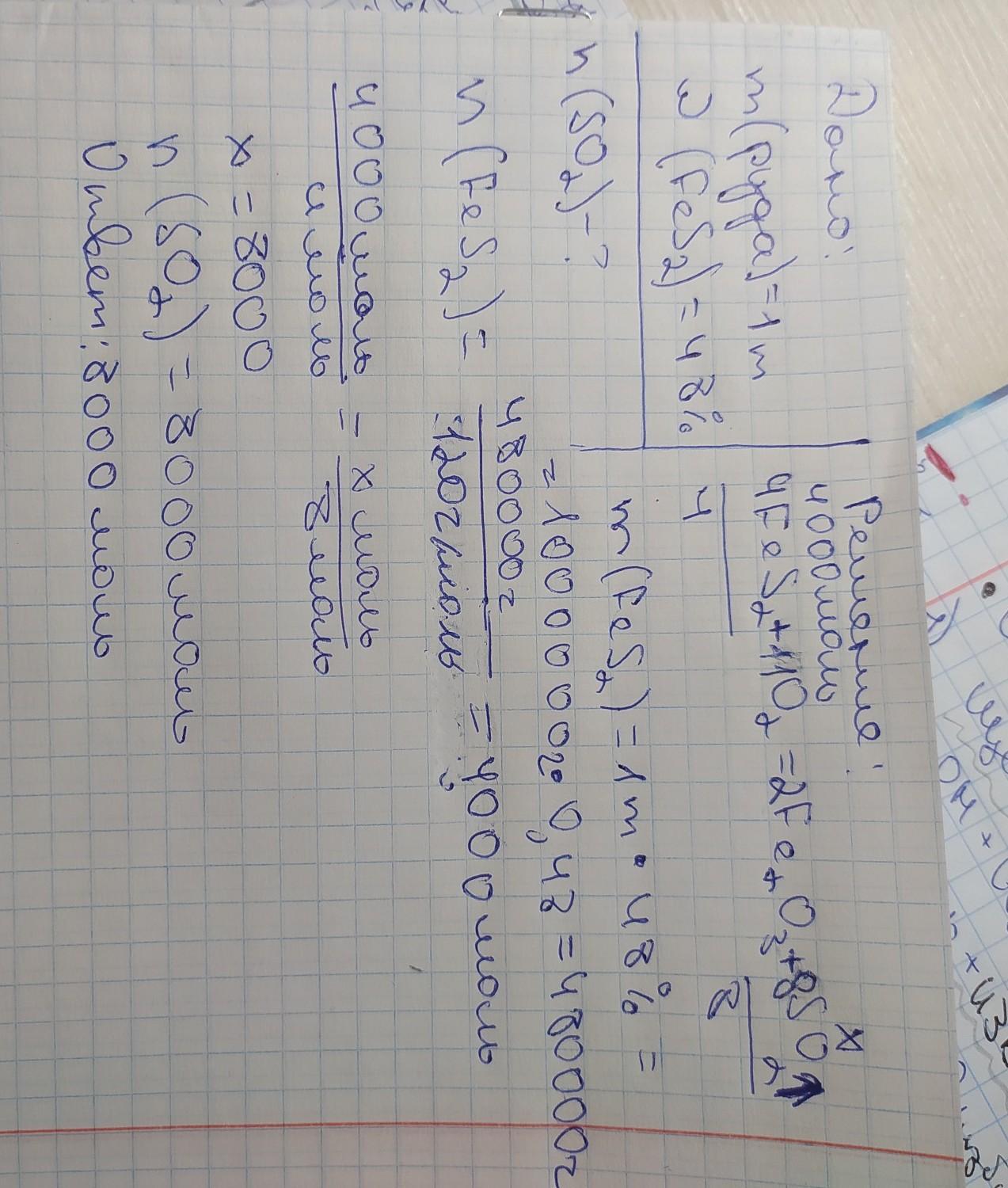 Какое количество сернистого газа можно получить из 1 тонны руды содержащей 48% пирита(Fes2)