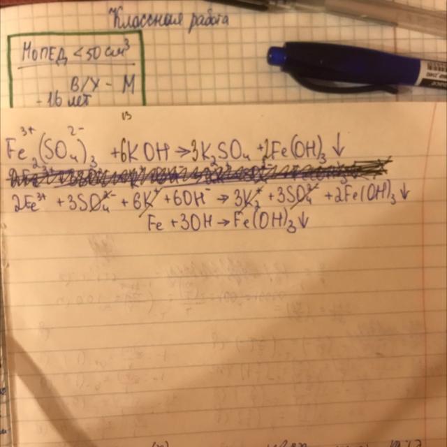 помогите составить уравнение химических реакций между сульфатом железа(III) и гидроксидом калия