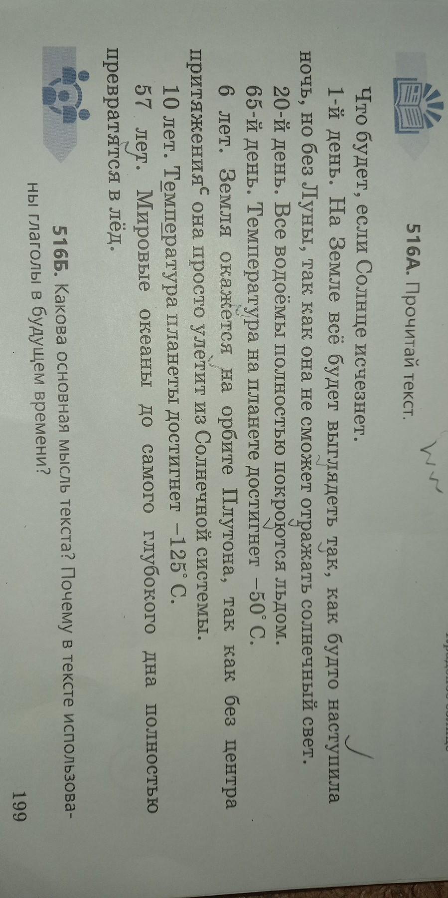 516Б. Какова основная мысль текста? Почему в тексте использова- ны глаголы в будущем времени? 199 (не могу думать, а надо срочно...)