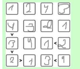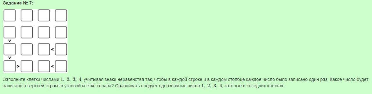 если кому не понятно, в первом ряду сверху написано: 1, 2, 4, 3; ниже 4, 3, 2, 1; ещё ниже 3, 4, 1, 2; и самый нижний ряд : 2, 1, 3, 4