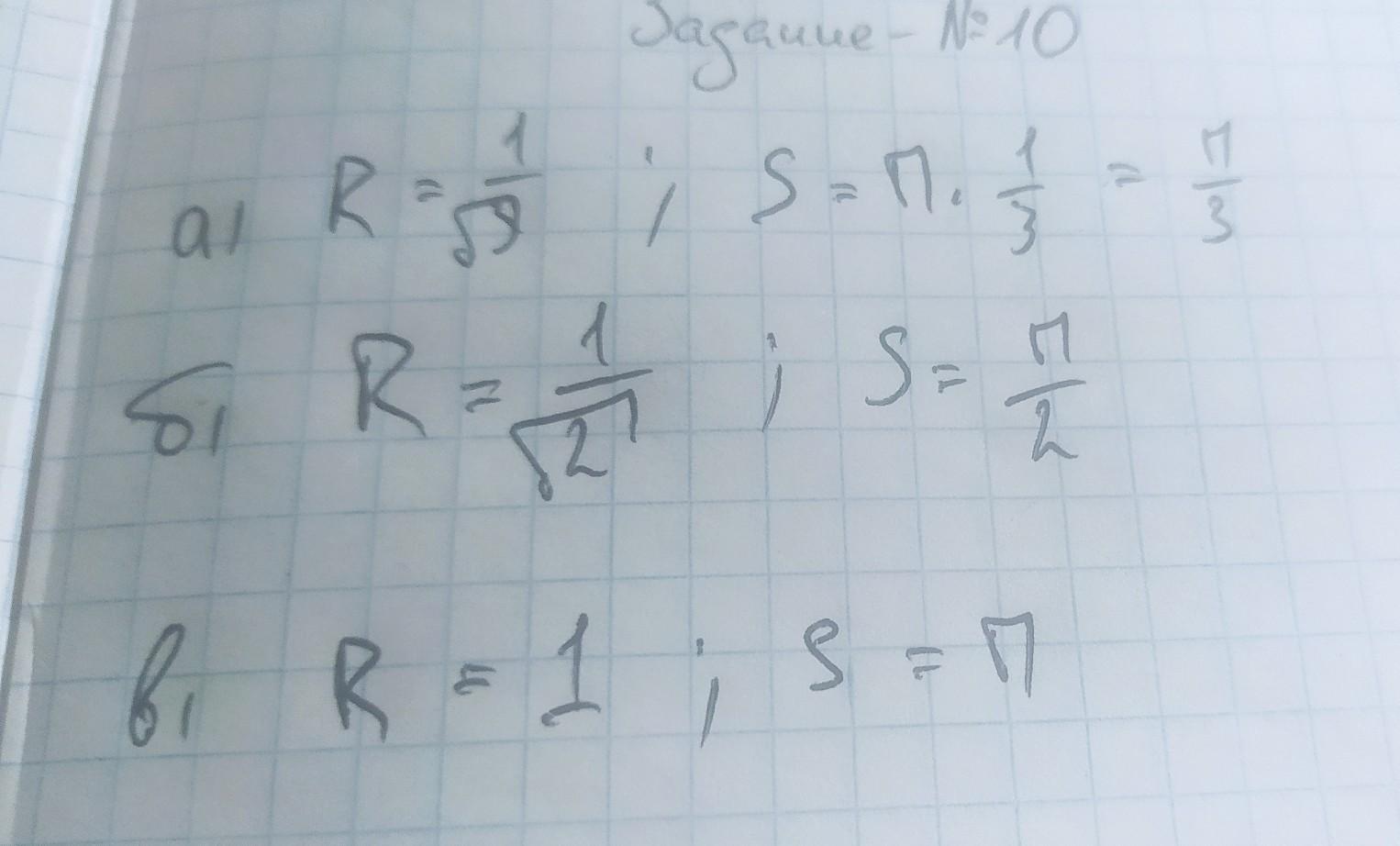 Найдите площадь круга, описанного около: а)равностороннего треугольника; б)квадрата; в)правильного шестиугольника со стороной 1
