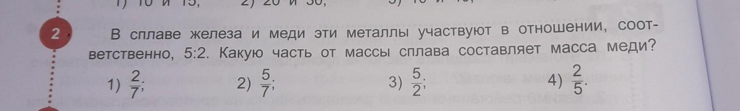 Железо сост. 5 частей, медь 2 ⇒ 2/5