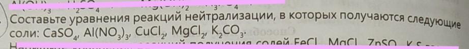ЗАДАНИЕ: составьте уравнения реакций нейтрализации, в которых получаются следующие соли: