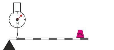 Рассмотрим момент сил относительно левого конца рычага (там, где он упирается на треугольник). Динамометр поворачивал бы рычаг против часовой стрелки, если не было бы противовеса. Противовес действует на рычаг с силой, направленной по часовой стрелке, тогда:
