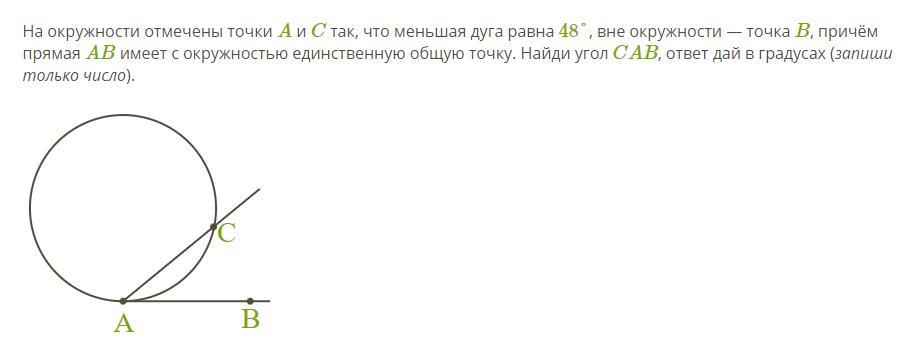 значит, ∠САВ=48°/2=24°