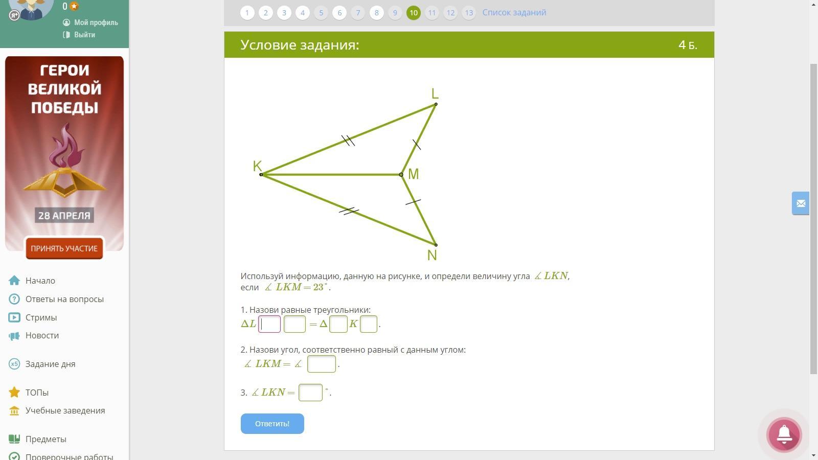 3. ∠LKN=∠LKM+∠MKM=23°+23°=46°