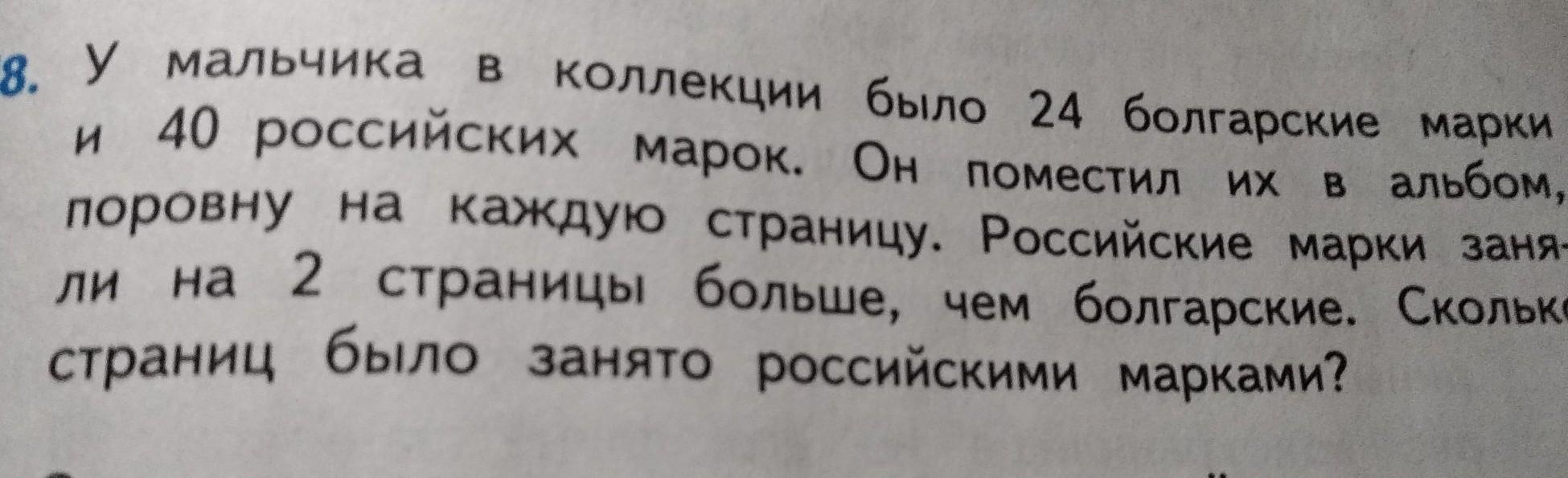 3)40:8=5(стр)- заняли в альбоме Российские марки.