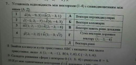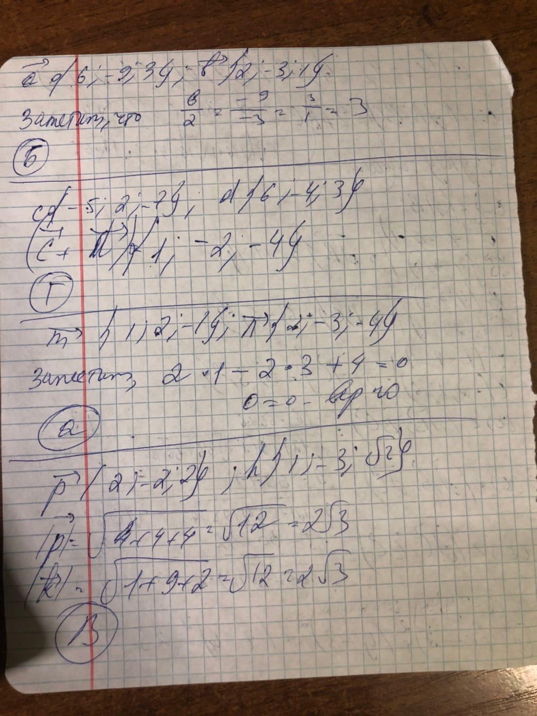 7.A Векторы перпендикуляр Б Векторы коллинеарные B Векторы имеют равные доски Г. Сумма векторов равна вектору ( 1 ; -2 ; -4 ) Д Векторы равны