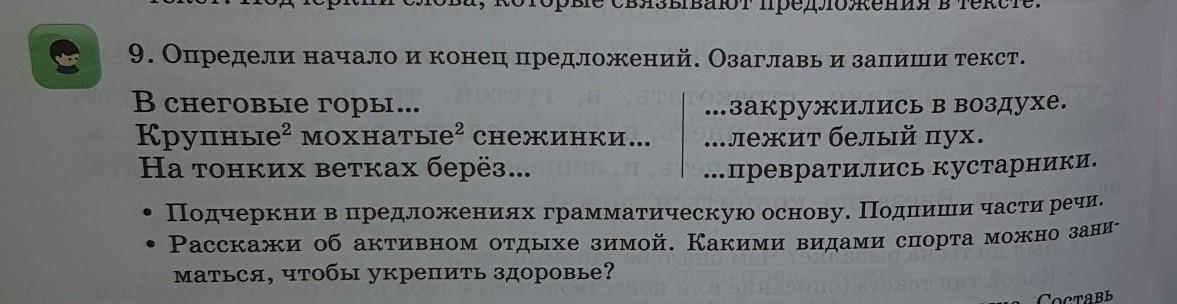 9. Определи начало и конец предложений. Озаглавь и запиши текст.
