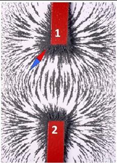 Цифра 1 соответствует южному полюсу магнита ,цифра 2-северному