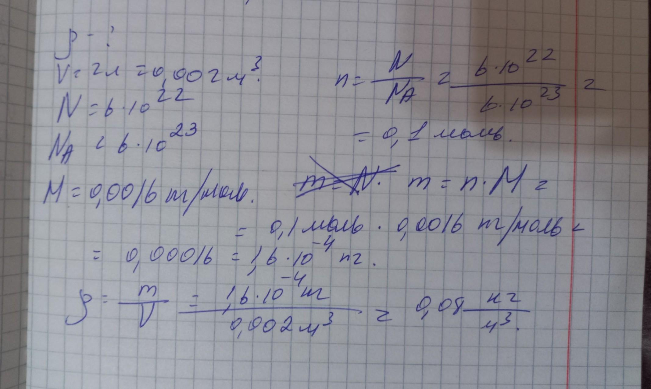 Визначте густину кисню, якщо відомо, що в об'ємi 2 л міститься 6•10²² його молекул, відповідь на фотографії