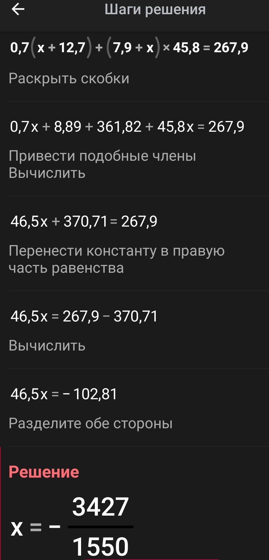 1) 0,7 * (х+12,7) + (7,9 + х) * 45,8= 267,9