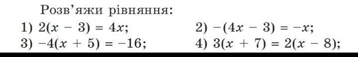4) 3(x+7)=2(x-8); 3x+21=2x-16; 3x-2x=-16-21; x=-37