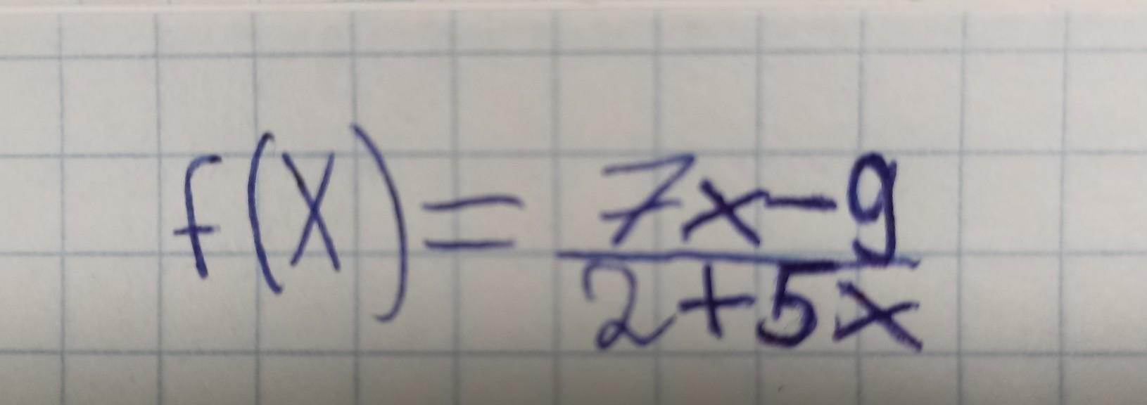 f( x ) = ( 7x - 9 )/( 2 + 5x ) ;