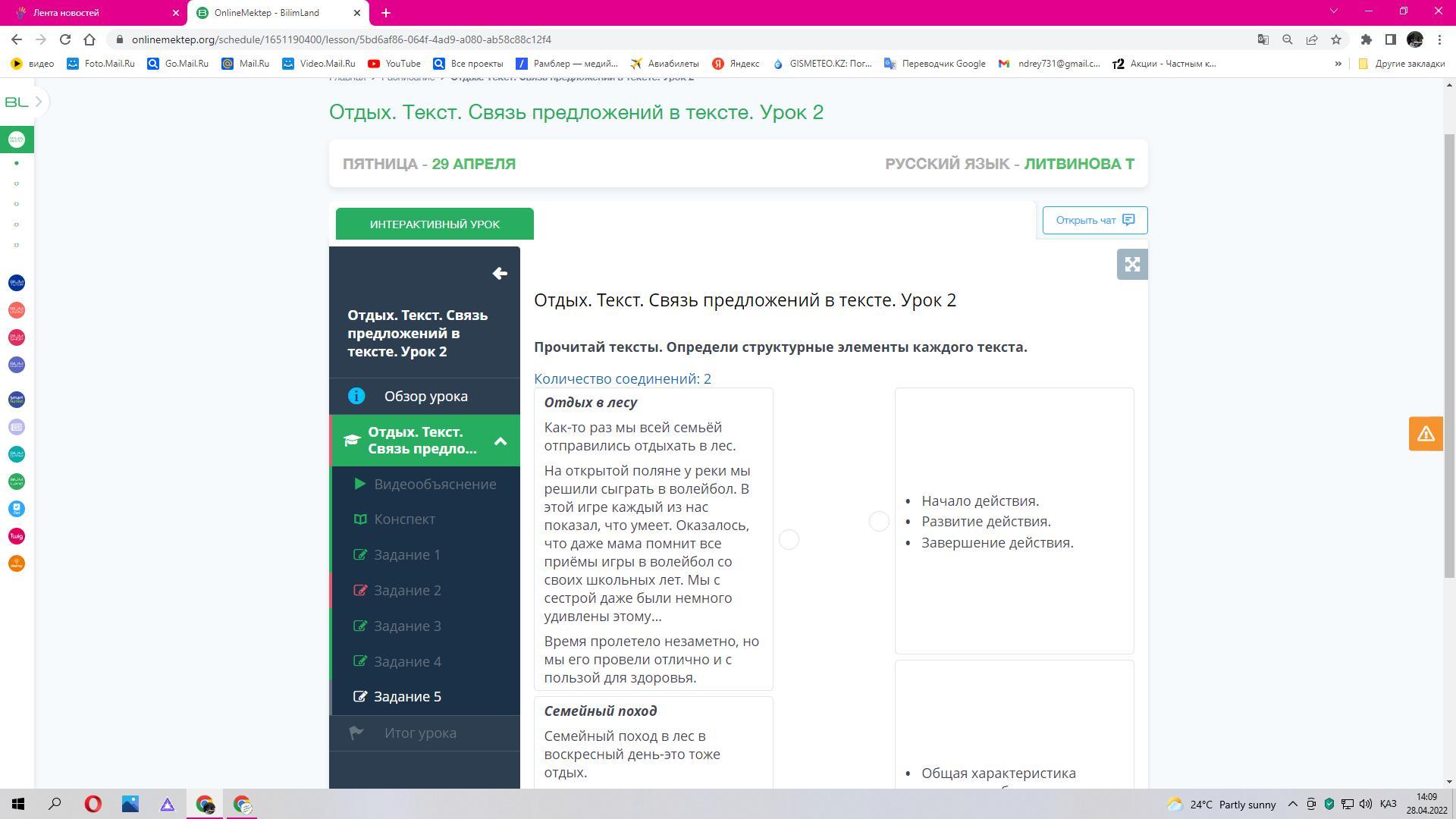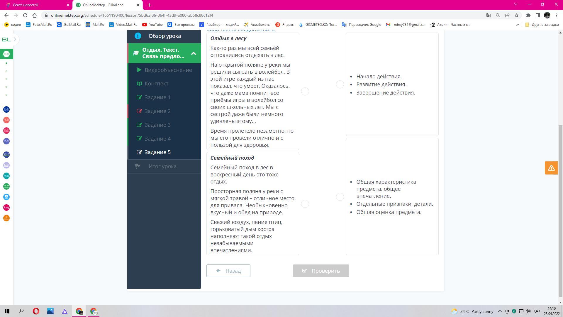 Отдых в лесу ето - начало действия, а семейный поход - общая характеристика предмета, общее впечатление