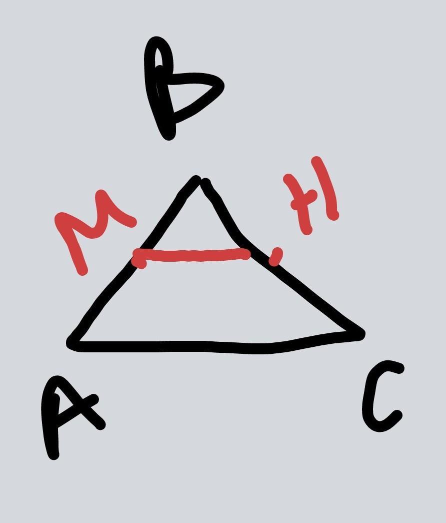 Проведём медиану(она же и высота) в треугольнике АВС ,назовём её ВК. Пусть ВК пересекает МН в точке О. По теореме Фалеса: ВО:ОК=АМ:МВ, что и доказывает то что нужно доказать.