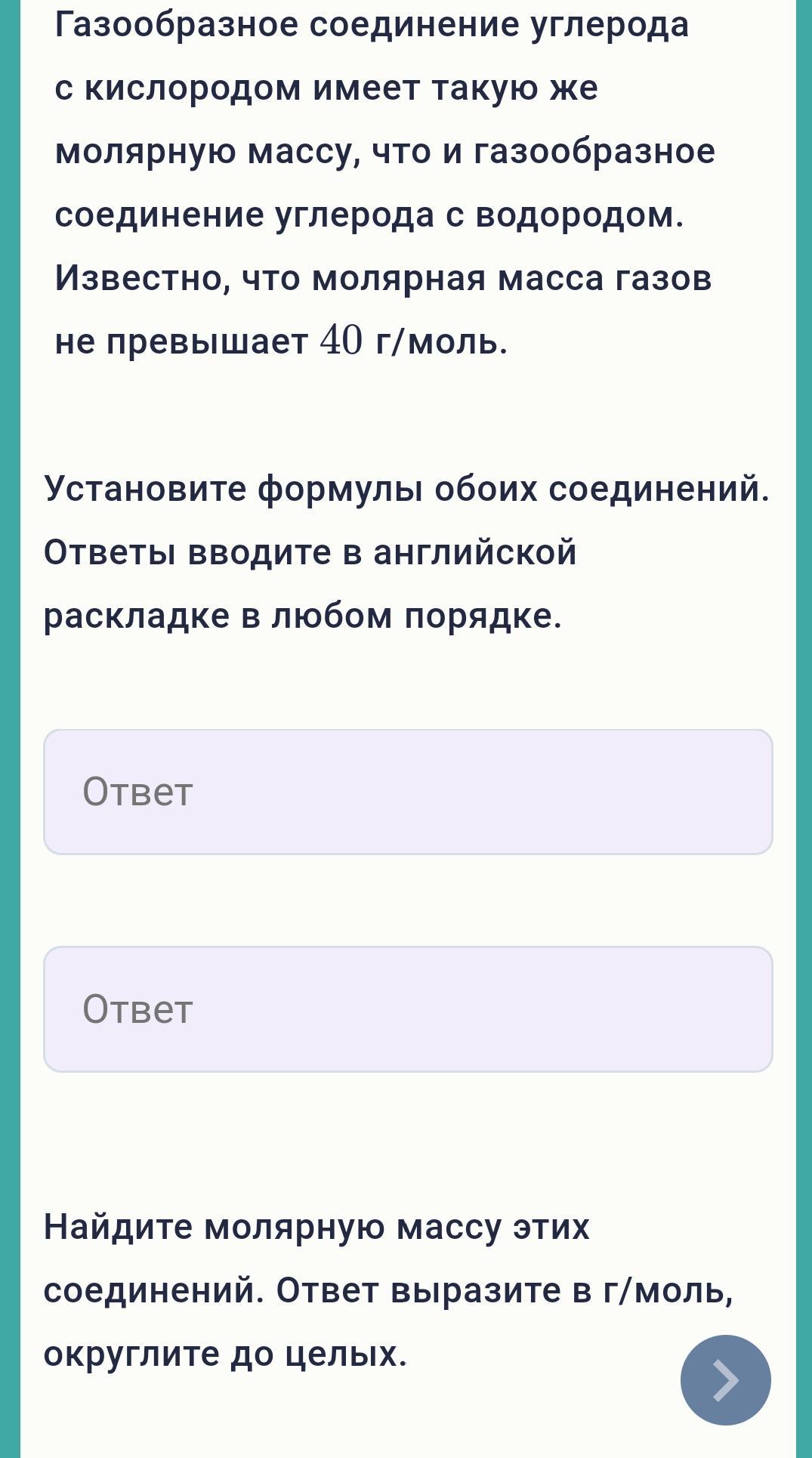 Второе соединение подбираем исходя, что углеводород с молярной массой 28г/моль не может содержать более двух атомов углерода. Вариантов выбора не так и много: метан, этан, этен (этилен), этин (ацетилен). Нужно просто посчитать у этих трех веществ молярную массу и выбрать нужную.