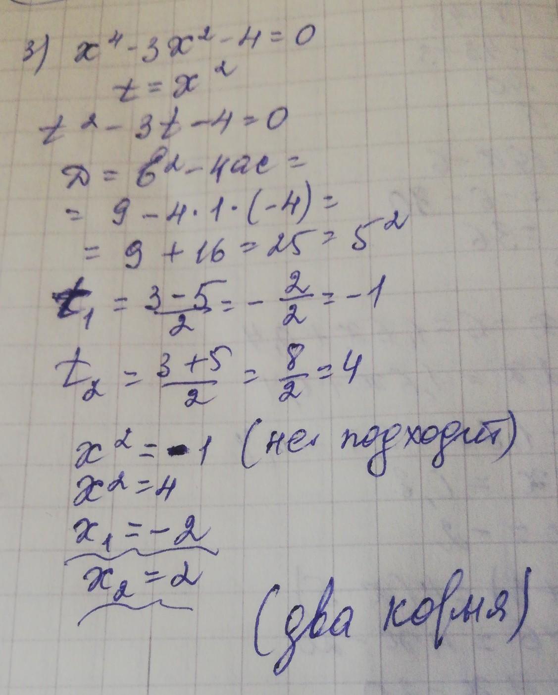 3)х^4-3х^2-4=0