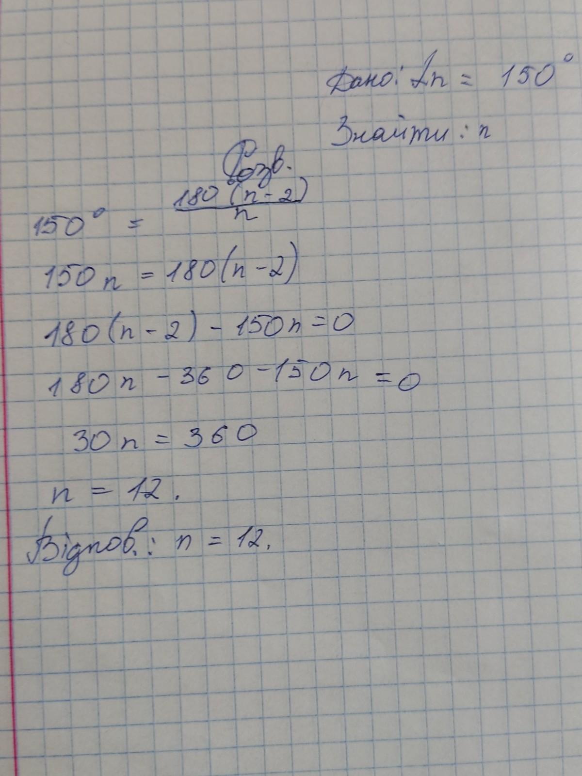 ТЕРМІНОВО!!!! 40БАЛІВ!!!!!! визначте кількість вершин многокутника, якщо кожен із його кутів дорівнює 150