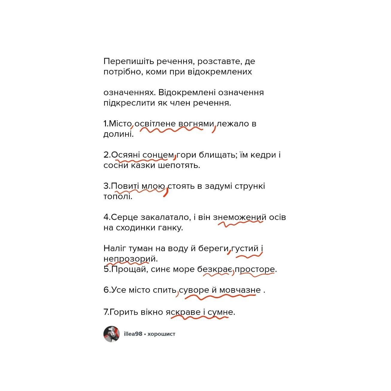 Перепишіть речення, розставте, де потрібно, коми при відокремлених
