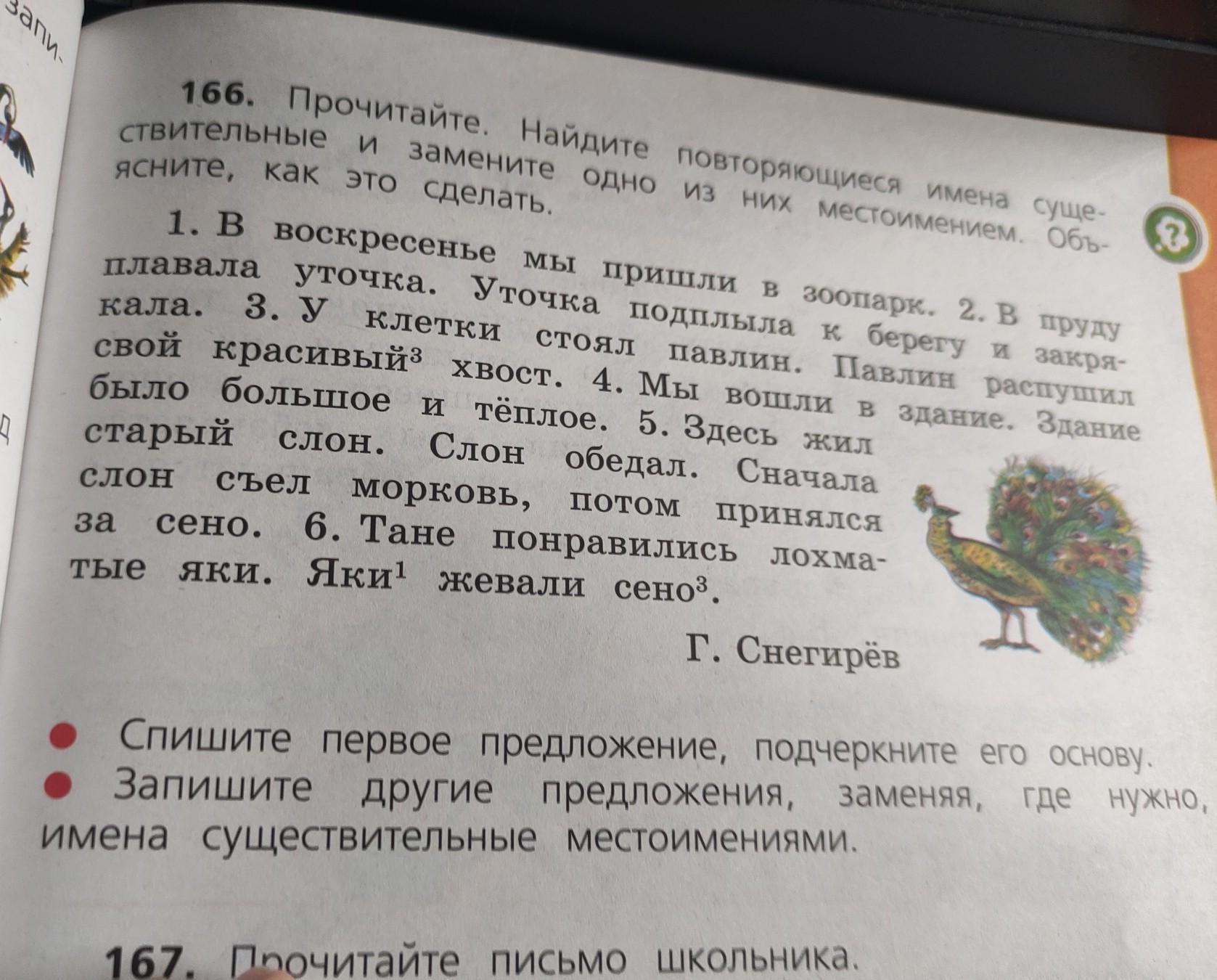 повторяющиеся имена существительные: уточка,павлин,здание,слон,сено