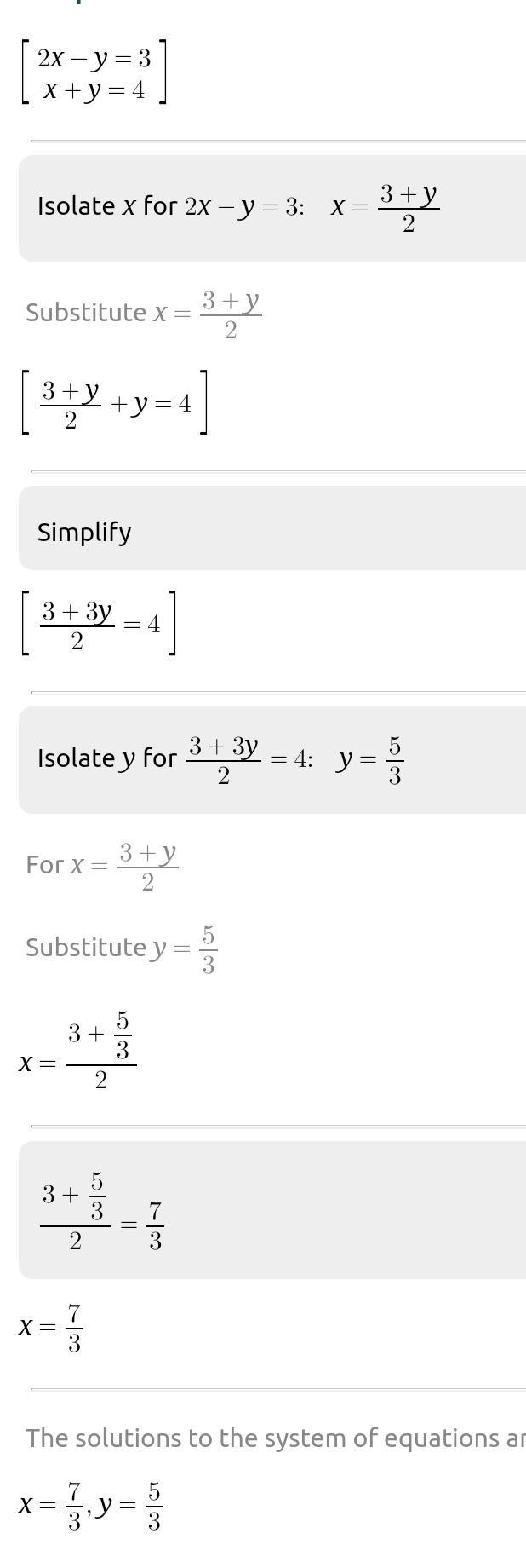 а) 2х-у=3 и х+у=4