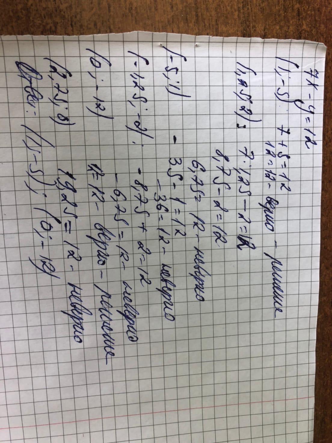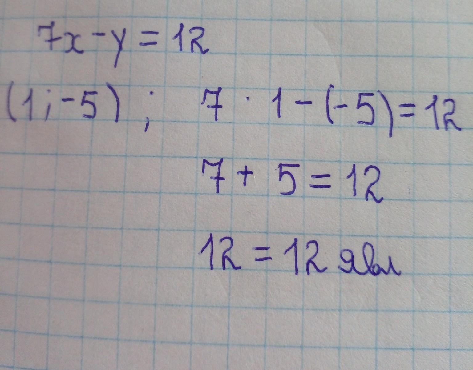 Какие из пар (1; -5), (1,25; 2); (-5; 1); (-1,25; -2); (0; -12); (2,75; 0) являются решениями уравнения: 7x-y=12