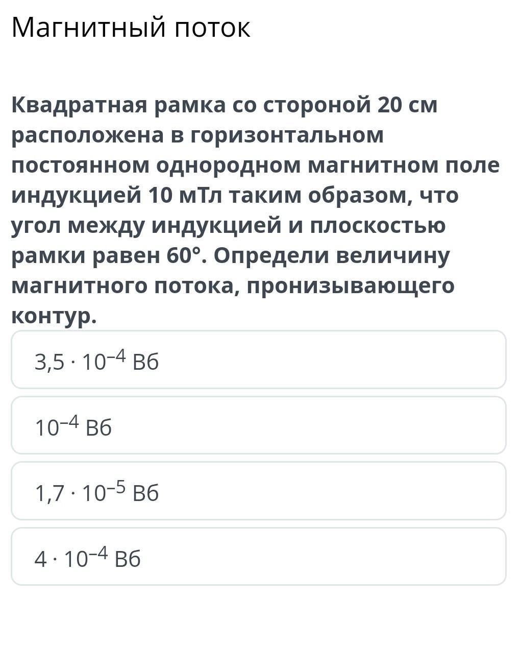Ф=B*S*sinα=B*a²*sin60=0.01*0.2²*0.866=3.5*10⁻⁴ Вб