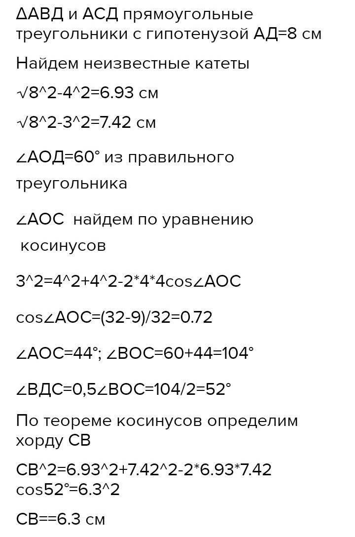 кола і з'єднує дві точки кола. Довжини цих відрізків дорівнюють 3 см, 4 см, 8