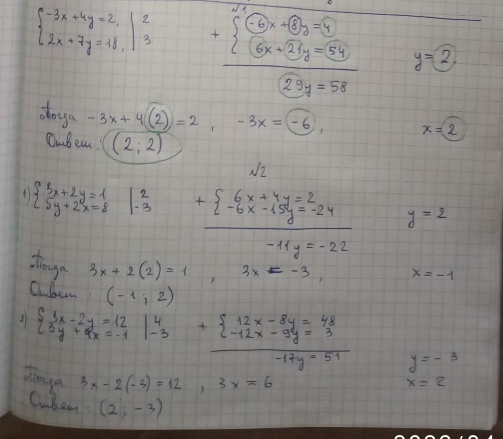 -3х + 4у = 2 | х2 → -6х + 8у = 4