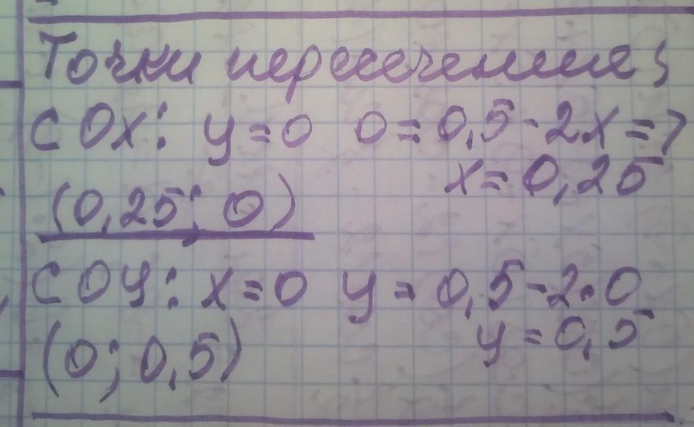 СРОЧНО!!!Не виконуючи побудови знайти точки перетину з осями координат графіка функції у = 0,5 - 2х