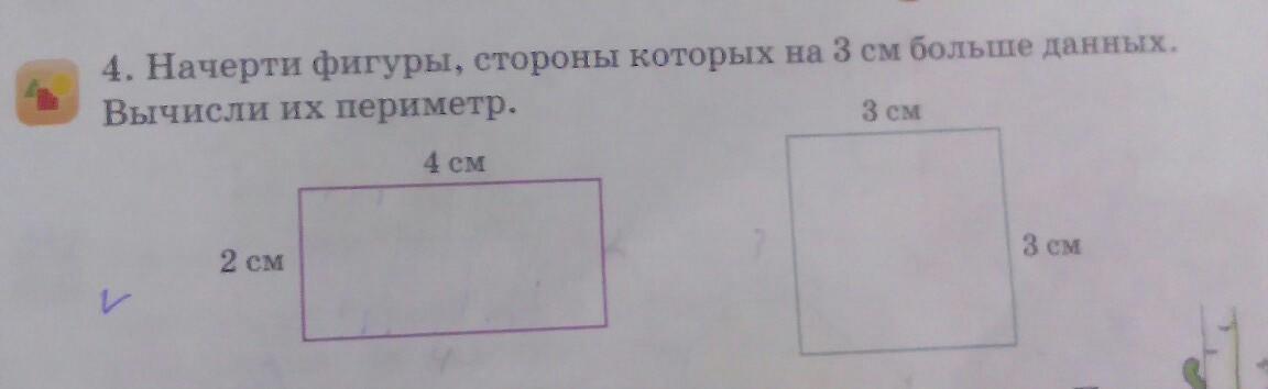 начертите фигуры, стороны которых на 3 см больше данных. Вычеслите их периметр