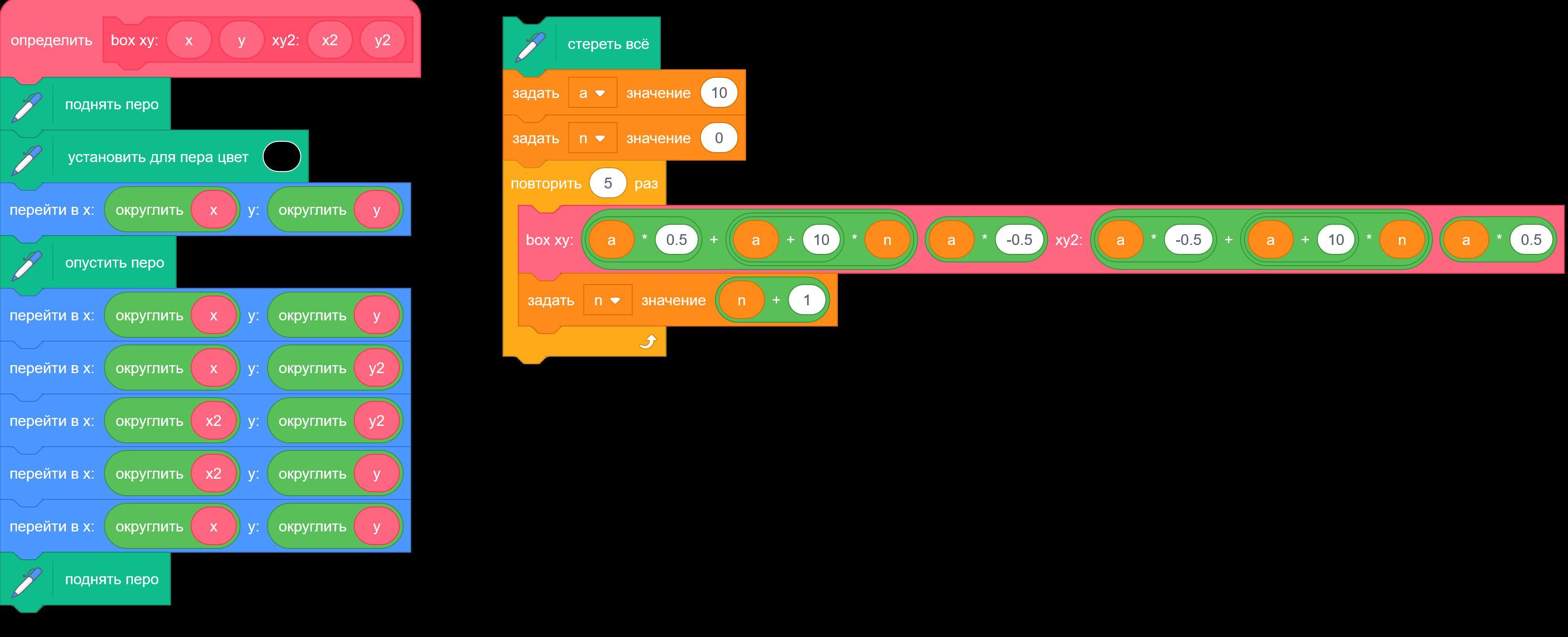 складіть проєкт для малювання пяти квадратів з довжиною сторони а кроків розміщених поруч на відстані 10 кроків один від одного ,для задання значення змінної а використайте блок надати значення