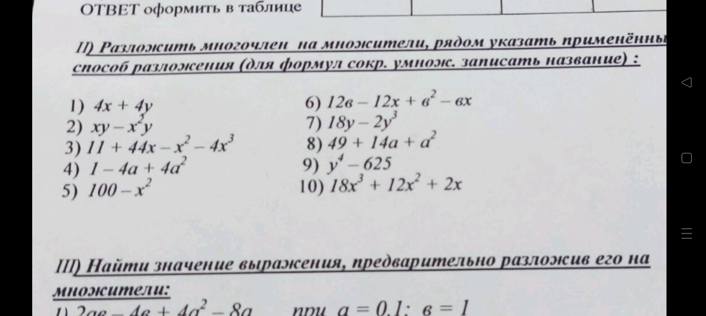 Помогите срочно, разложить на множители указать способ разложения, записать название.
