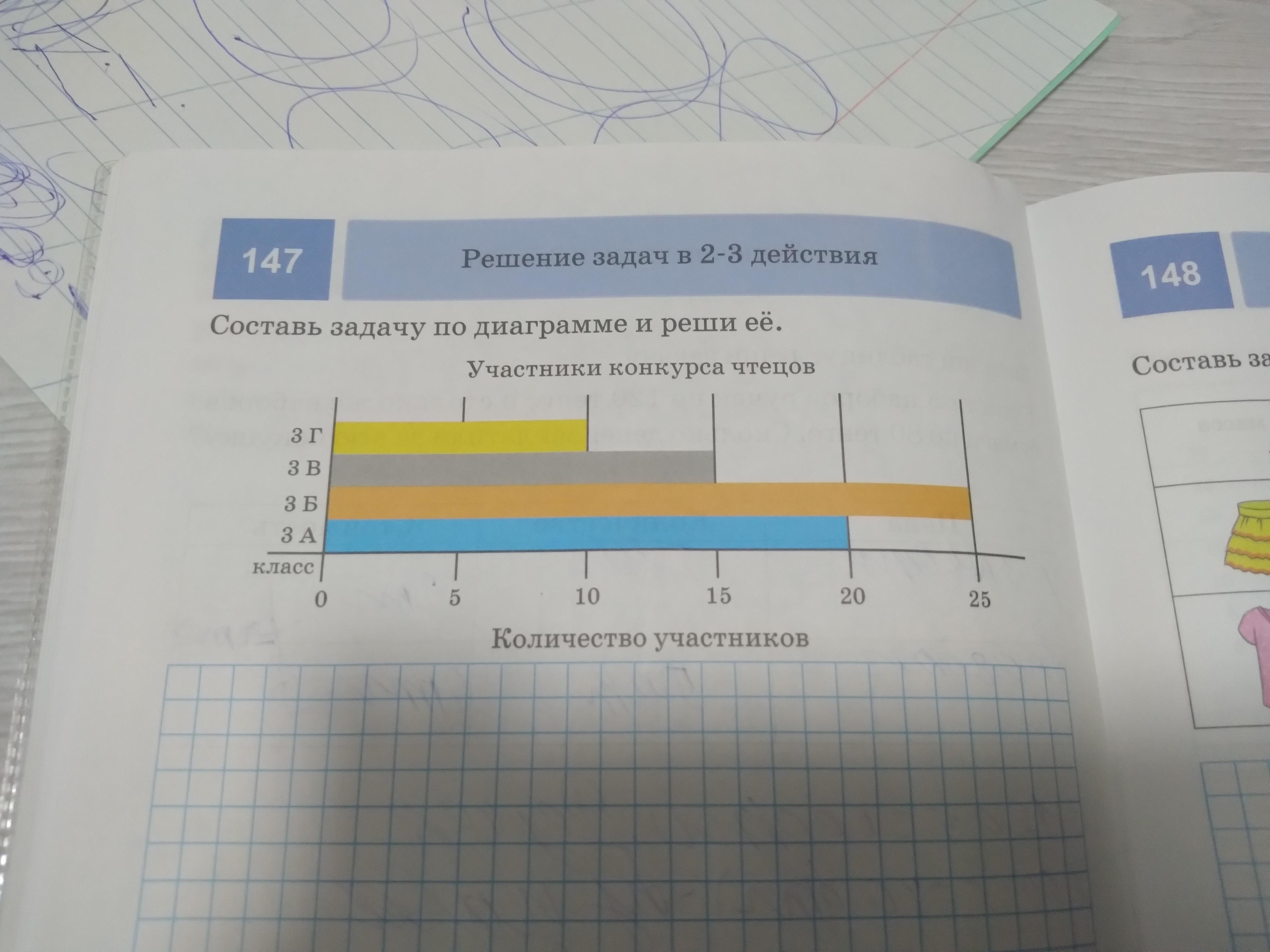 Вчера в городе состоялся конкурс чтецов среди 3 классов. Из 3 г пришло 10 человек. Из 3 в пришло 15 человек. Из 3 б пришло 25 человек. А из 3 а 20 человек. Из какого класса пришло больше всего человек? Из какого меньше всего?
